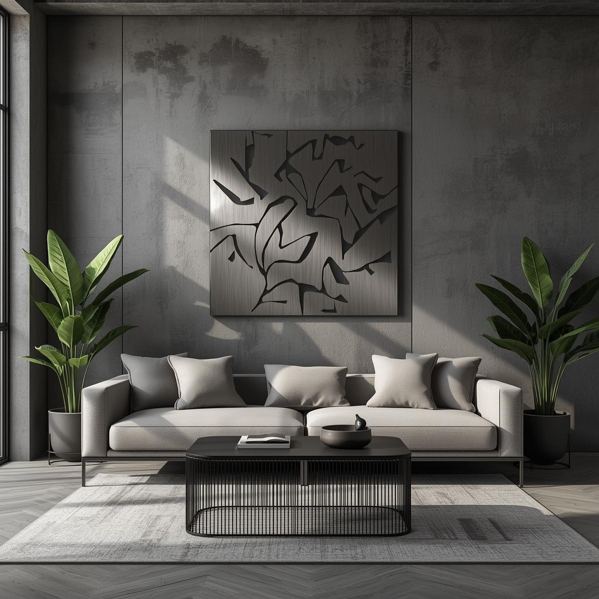 Panel dekoracyjny Abstract Leaves to propozycja dla osób ceniących elegancką prostotę i nowoczesne formy. Geometryczne kształty liści i gałęzi tworzą oryginalną, ażurową kompozycję, która świetnie sprawdzi się jako dekoracja ściany w salonie, biurze czy przestrzeni publicznej. Panel wykonany z blachy stalowej o grubości 2 mm, dostępnej w wersji corten, malowanej proszkowo lub nierdzewnej, nada wnętrzu wyjątkowy charakter i lekkość.