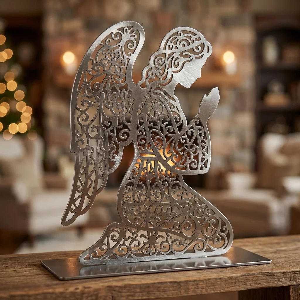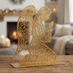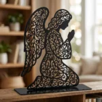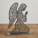 Anioł Modlitwy Klęczący – metalowa dekoracja wolnostojąca to subtelna ozdoba sakralna, która wnosi do wnętrza spokój, skupienie i elegancki charakter. Motyw klęczącego anioła w modlitewnej pozie pięknie podkreśla duchowy wymiar aranżacji, a ażurowy wzór nadaje dekoracji lekkości i wyjątkowej dekoracyjności.