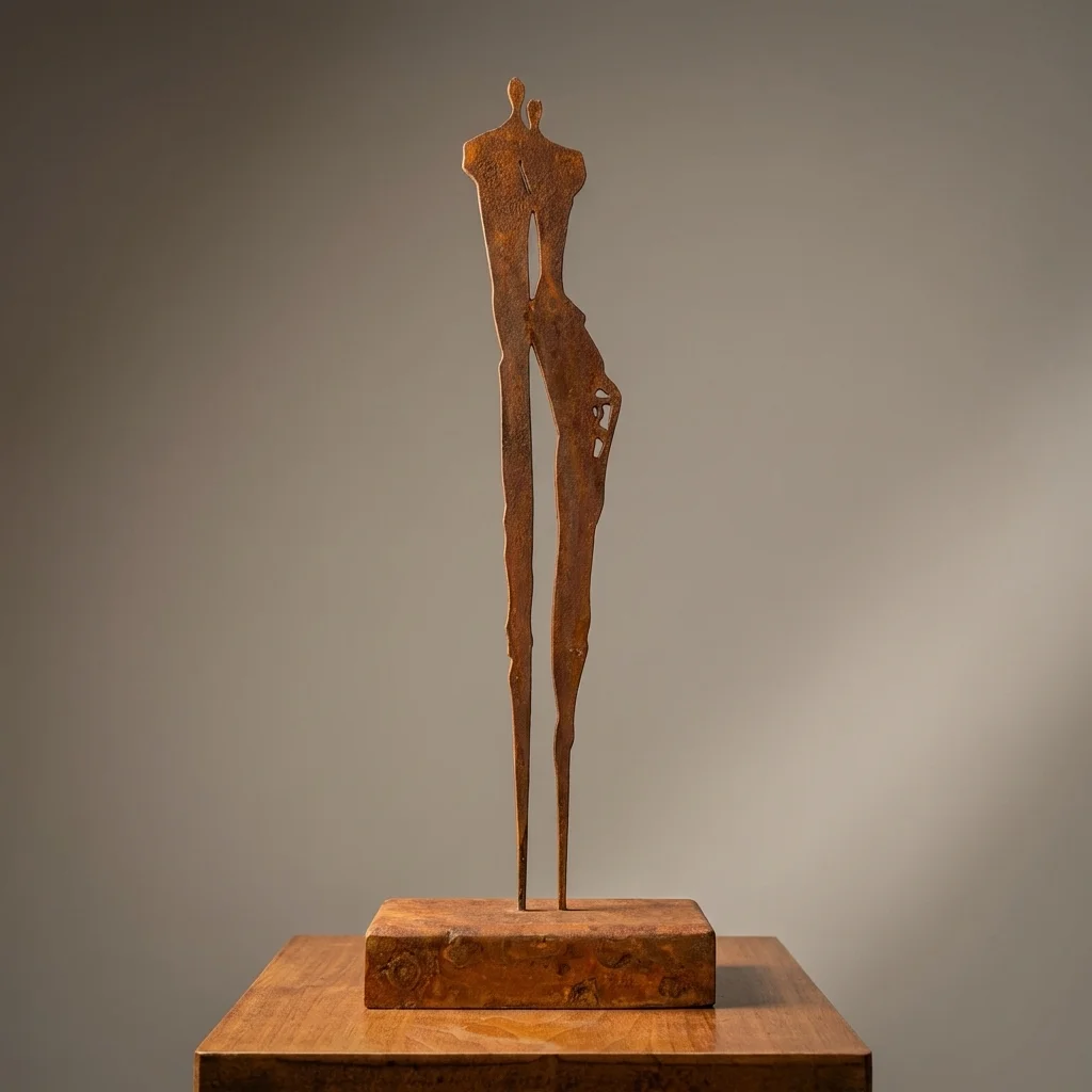 Bliskość – wolnostojąca rzeźba ogrodowa to artystyczna dekoracja z metalu przedstawiająca dwie smukłe sylwetki w delikatnym geście zbliżenia. Minimalistyczna forma i pionowa kompozycja tworzą wrażenie harmonii, spokoju i relacji, dzięki czemu rzeźba staje się subtelnym, a jednocześnie wyrazistym akcentem w nowoczesnym ogrodzie, na tarasie lub w strefie wejściowej.