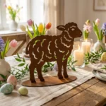Ażurowa, wolnostojąca sylwetka baranka inspirowana naturalnymi, pasterskimi motywami. Idealna na taras, stół ogrodowy lub przy wejściu do domu jako spokojny, elegancki akcent całoroczny. Dostępne rozmiary: 9×10 cm, 14×15 cm, 18×20 cm. Warianty wykończenia: corten, czarny, biały, złoty lub stal nierdzewna (polerowana/szczotkowana). Darmowa dostawa na terenie Polski.