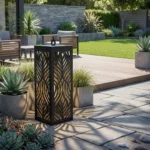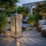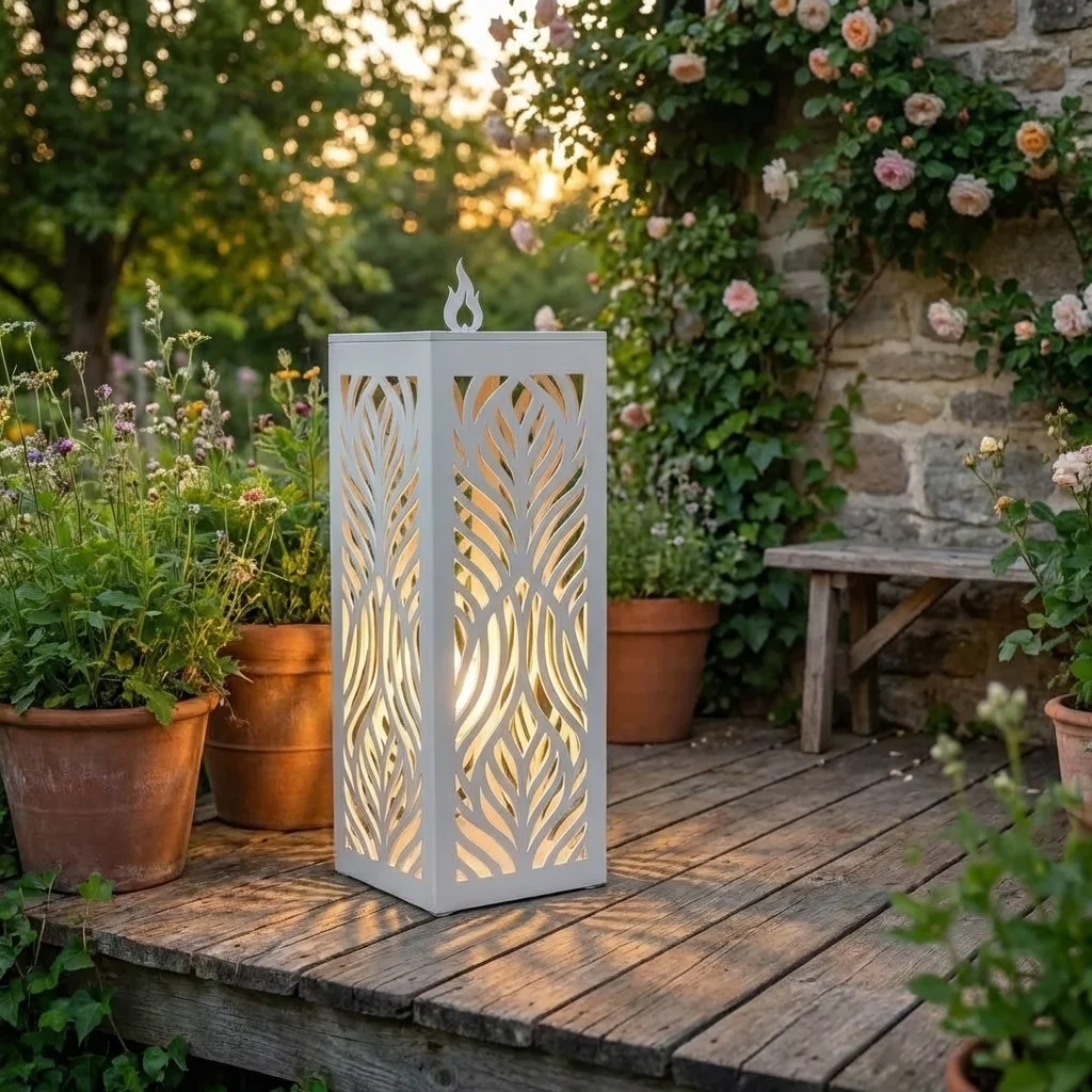 Cień Natury to elegancki metalowy lampion ogrodowy o lekkim, roślinnym wzorze, który pięknie rozprasza światło i tworzy nastrojowy klimat na tarasie, balkonie, w ogrodzie lub przy wejściu do domu. Smukła forma oraz dekoracyjny motyw inspirowany naturą sprawiają, że lampion świetnie odnajduje się zarówno w nowoczesnych, jak i bardziej romantycznych aranżacjach.