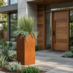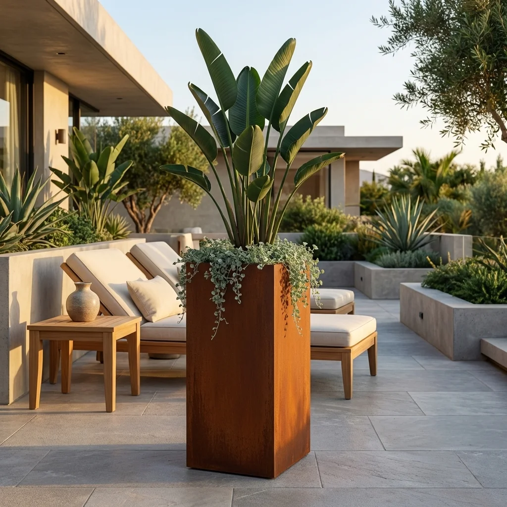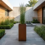 Cortenowa metalowa donica slim do ogrodu – naturalna patyna i nowoczesna forma