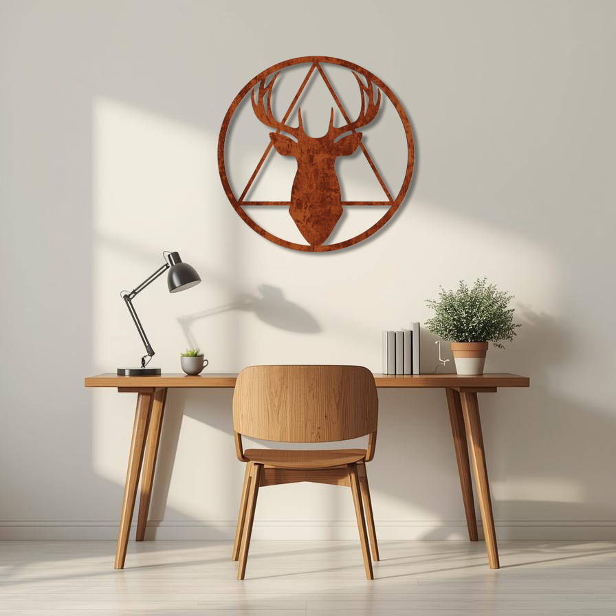 Nowoczesne metalowe dekoracje ścienne z motywem jelenia w geometrycznych wzorach. Elegancki akcent, który łączy naturę z nowoczesnym designem – idealny do salonu, biura, restauracji czy loftu.