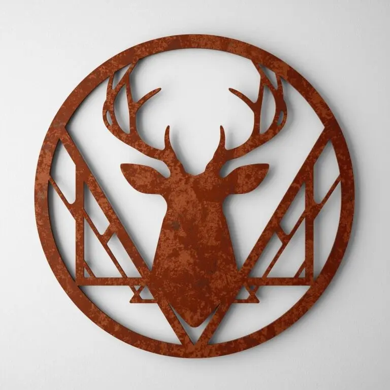 Deer II geometria linie – metalowa dekoracja ścienna z jeleniem w nowoczesnym, liniowym stylu. Rozmiary 50×50 lub 80×80 cm. Corten, proszkowa biała/czarna/złota lub stal nierdzewna. Darmowa dostawa w Polsce.