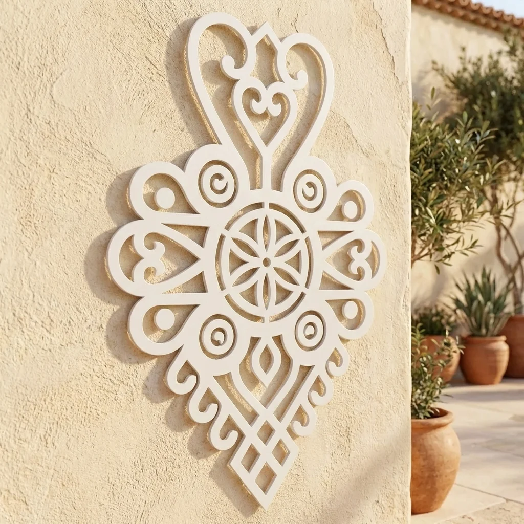 Ażurowa forma podkreśla lekkość wzoru, a metalowe wykonanie zapewnia trwałość i solidny, premium wygląd. To dekoracja, która dobrze odnajduje się zarówno w domach i apartamentach inspirowanych stylem góralskim, jak i w pensjonatach, restauracjach czy strefach wejściowych, gdzie liczy się mocny detal dekoracyjny.