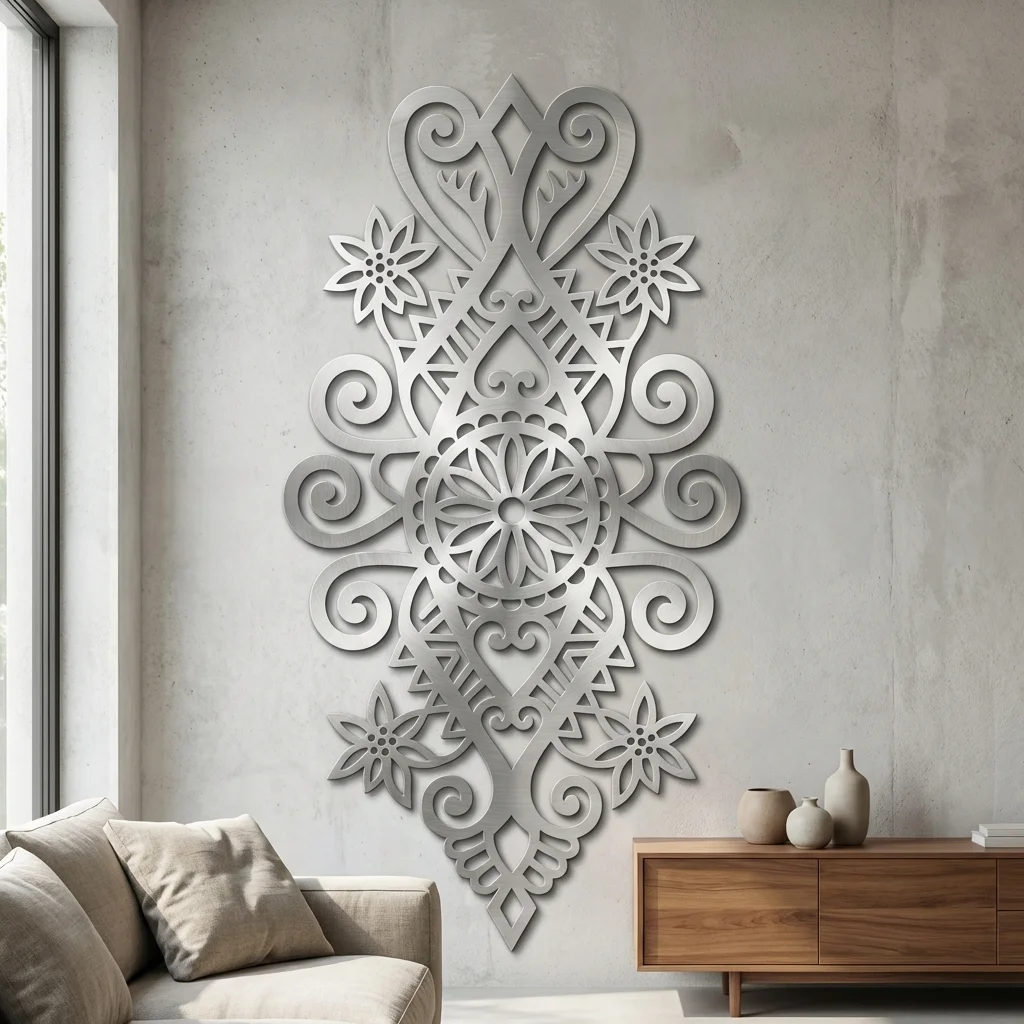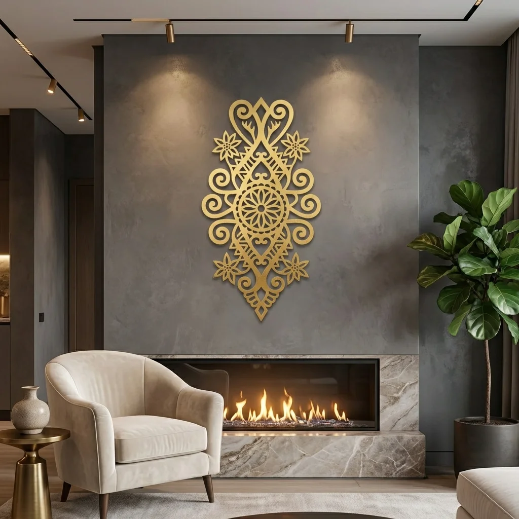 Ażurowa forma nadaje dekoracji lekkości, a metalowe wykonanie podkreśla jej trwałość i premium charakter. To model idealny do salonu, holu, apartamentu, pensjonatu lub reprezentacyjnej strefy wejściowej, gdzie dekoracja ma budować klimat i przyciągać uwagę już od pierwszego spojrzenia.