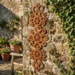 Pionowy dekor ścienny z metalu inspirowany wzornictwem Podhala to elegancka ozdoba do salonu, przedpokoju, apartamentu lub pensjonatu. Ażurowy tryptyk świetnie prezentuje się na drewnie, kamieniu i jasnych ścianach, dodając wnętrzu regionalnego charakteru w nowoczesnym wydaniu.