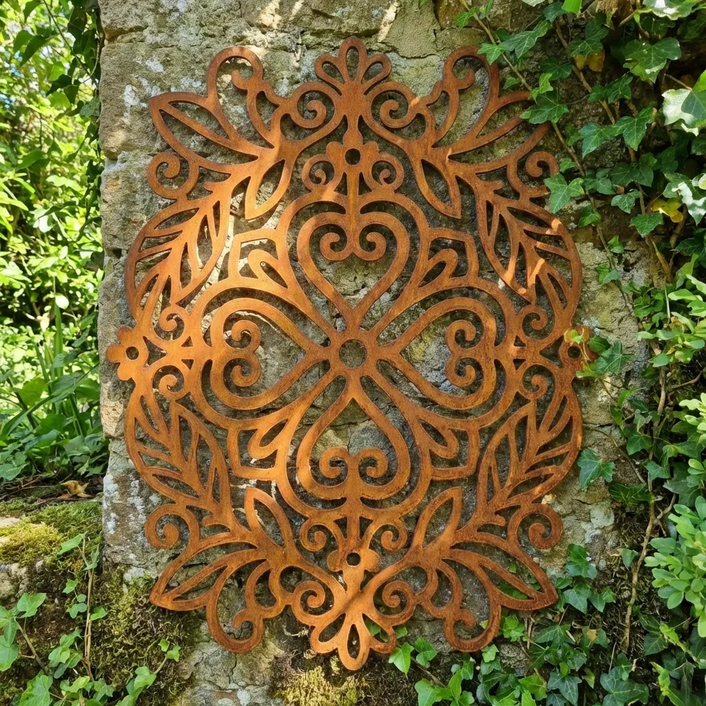 Dekor ścienny metalowy kaszubski – Kaszubskie Serce Ornamentu to elegancka metalowa ozdoba ścienna inspirowana tradycyjnym wzornictwem kaszubskim. Symetryczny motyw serca, liści i ornamentalnych zawijasów pięknie podkreśla charakter wnętrza i pasuje do aranżacji naturalnych, rustykalnych oraz nowoczesnych.
