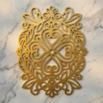 Dekor ścienny metalowy kaszubski – Kaszubskie Serce Ornamentu to efektowna ozdoba ścienna inspirowana tradycyjnym wzornictwem kaszubskim. Symetryczna kompozycja z wyraźnym motywem serca, roślinnych zawijasów i dekoracyjnych liści tworzy bogaty, a jednocześnie harmonijny wzór, który doskonale prezentuje się we wnętrzach naturalnych, rustykalnych, regionalnych i nowoczesnych.