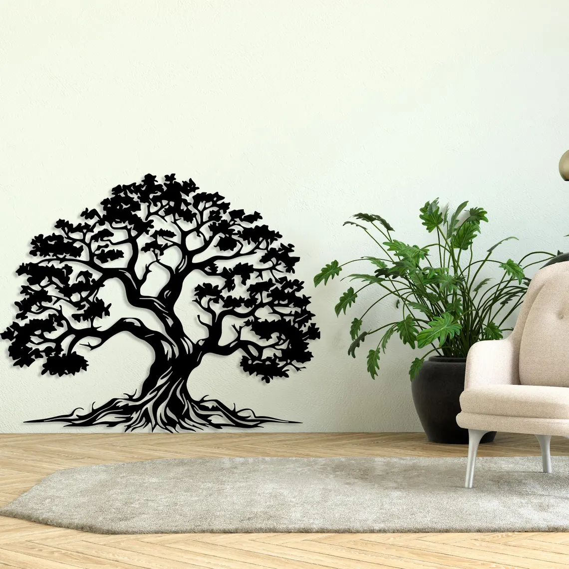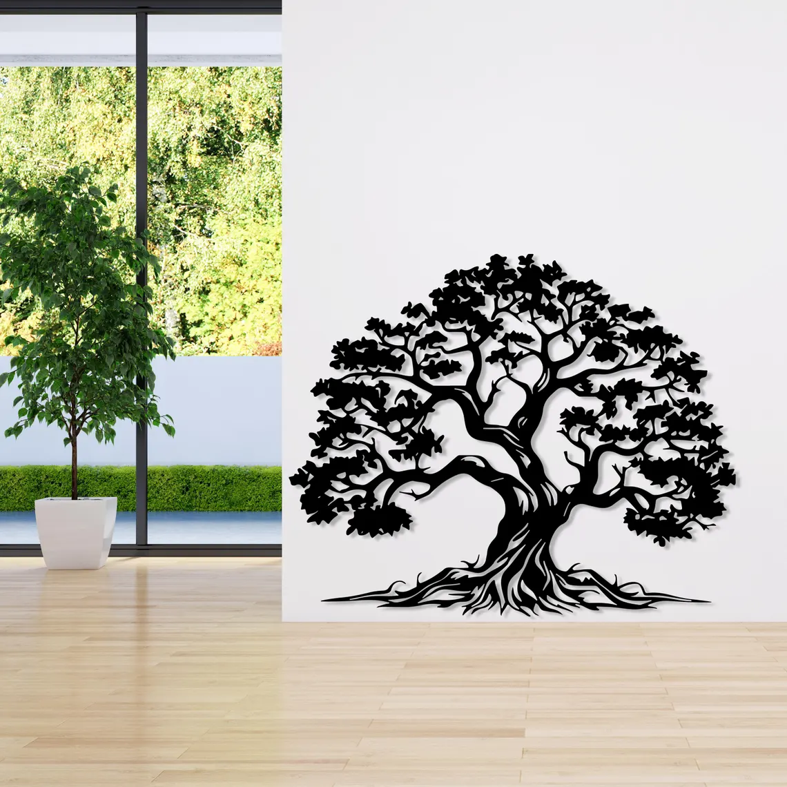 Dekoracja Metalowa Drzewo Życia to wyjątkowa ozdoba, która łączy w sobie symbolikę siły, równowagi i harmonii. Wykonana z wysokiej jakości stali, wycinana laserowo z niezwykłą dbałością o szczegóły i malowana proszkowo, dzięki czemu jest odporna na warunki atmosferyczne oraz uszkodzenia mechaniczne.