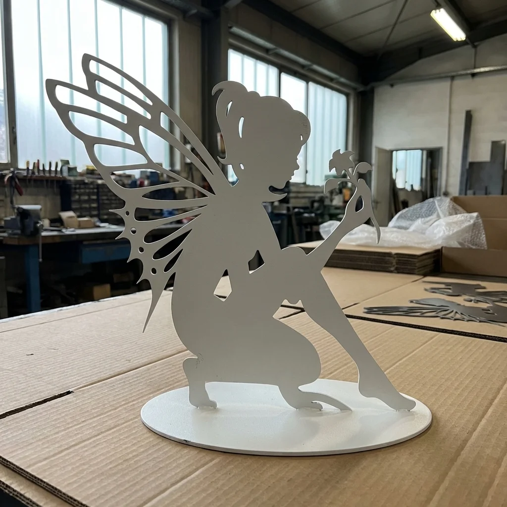 Dekoracja metalowa wolnostojąca wróżka „Kwiatowa Opiekunka” – delikatna rzeźba z motywem skrzydeł i kwiatu, idealna do ogrodu, na taras oraz do jasnych wnętrz. Rozmiary: 15×15 cm, 20×20 cm, 25×25 cm. Wykończenia: corten (rdzawy), czarny, biały, złoty lub stal nierdzewna szczotkowana. Darmowa dostawa na terenie Polski.
