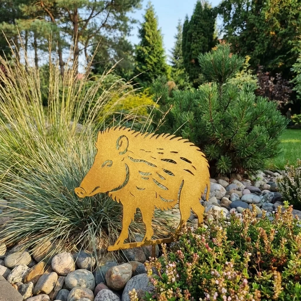 Dekoracja ogrodowa dzik do wbicia w ziemię to wyrazisty, metalowy akcent, który świetnie podkreśla charakter ogrodu.