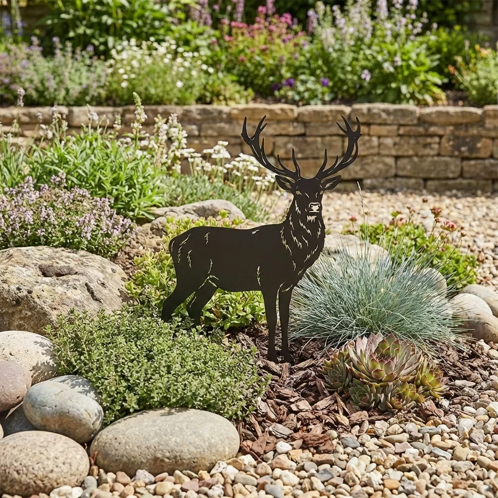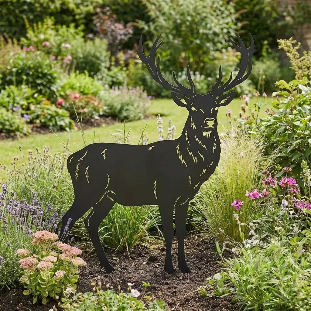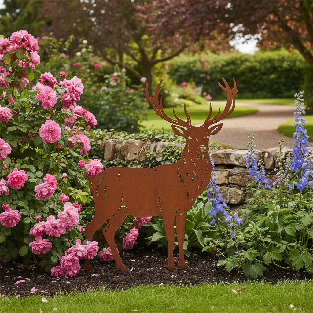 Dekoracja ogrodowa jeleń do wbicia w ziemię to efektowna, metalowa ozdoba, która od razu przyciąga wzrok w ogrodzie.