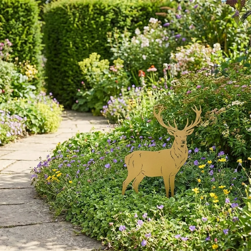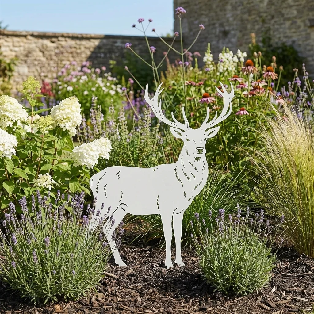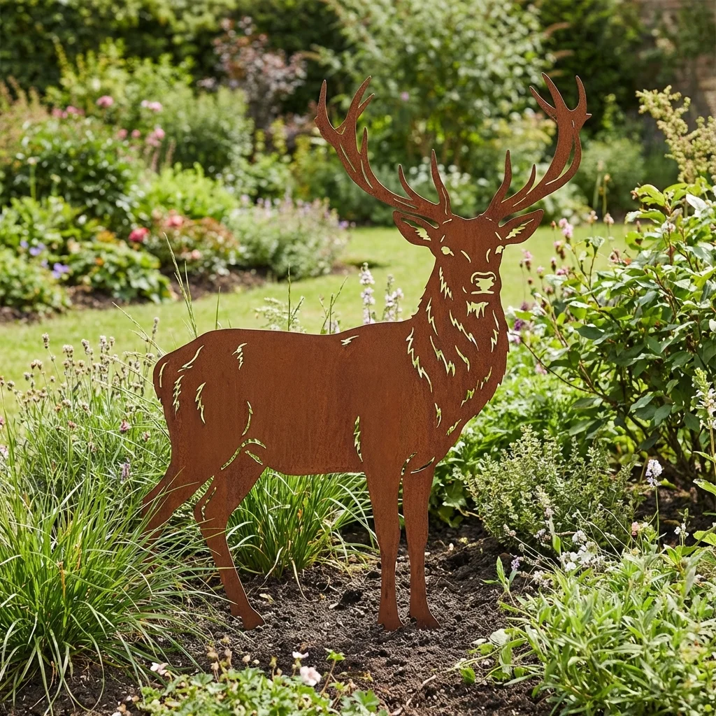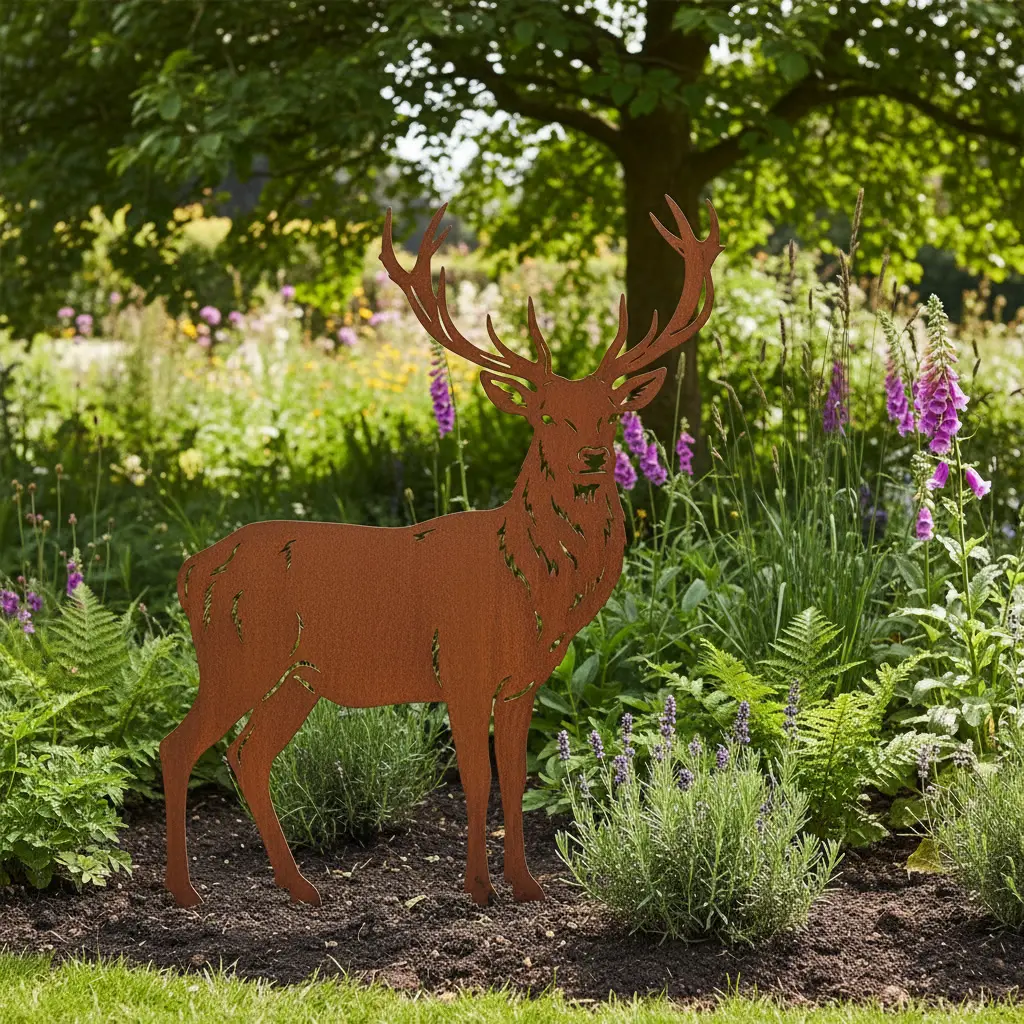 Dekoracja ogrodowa jeleń do wbicia w ziemię to efektowna, metalowa ozdoba, która od razu przyciąga wzrok w ogrodzie.