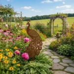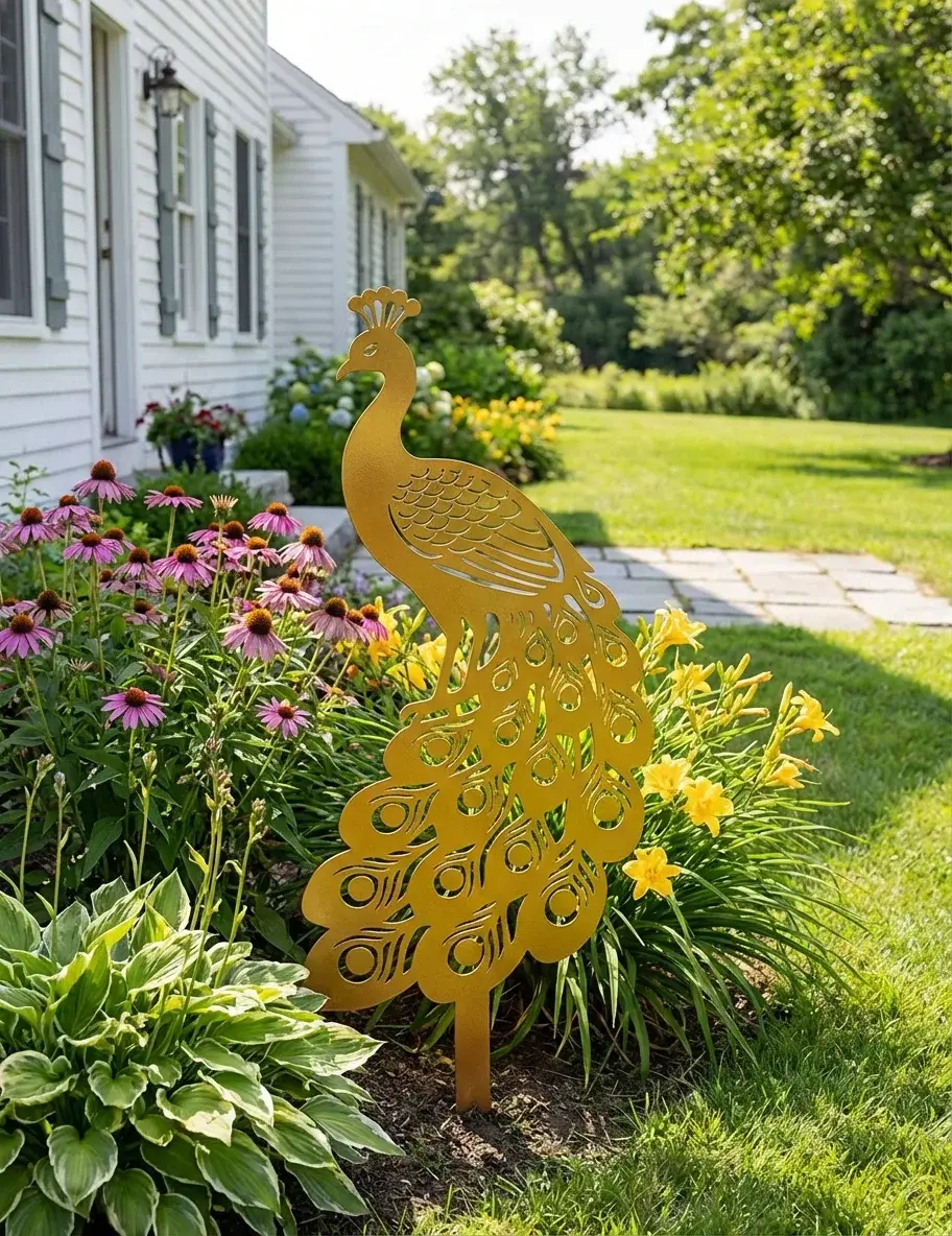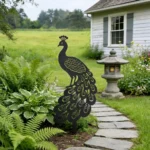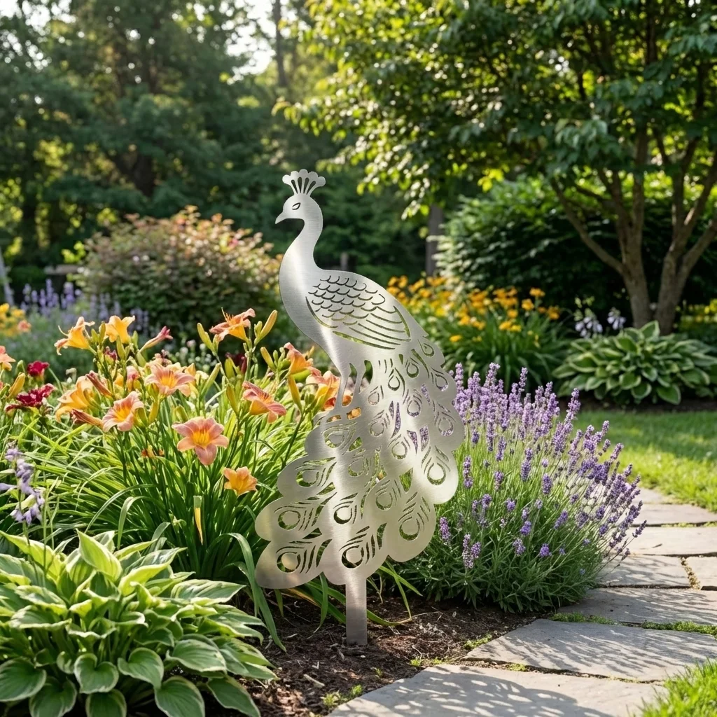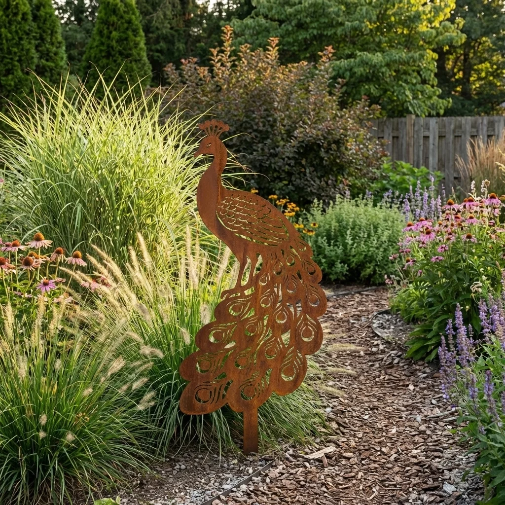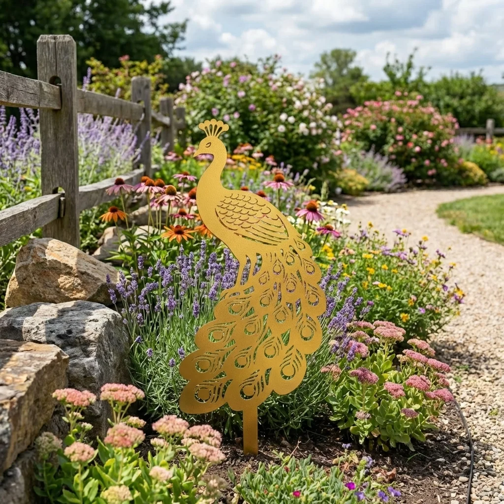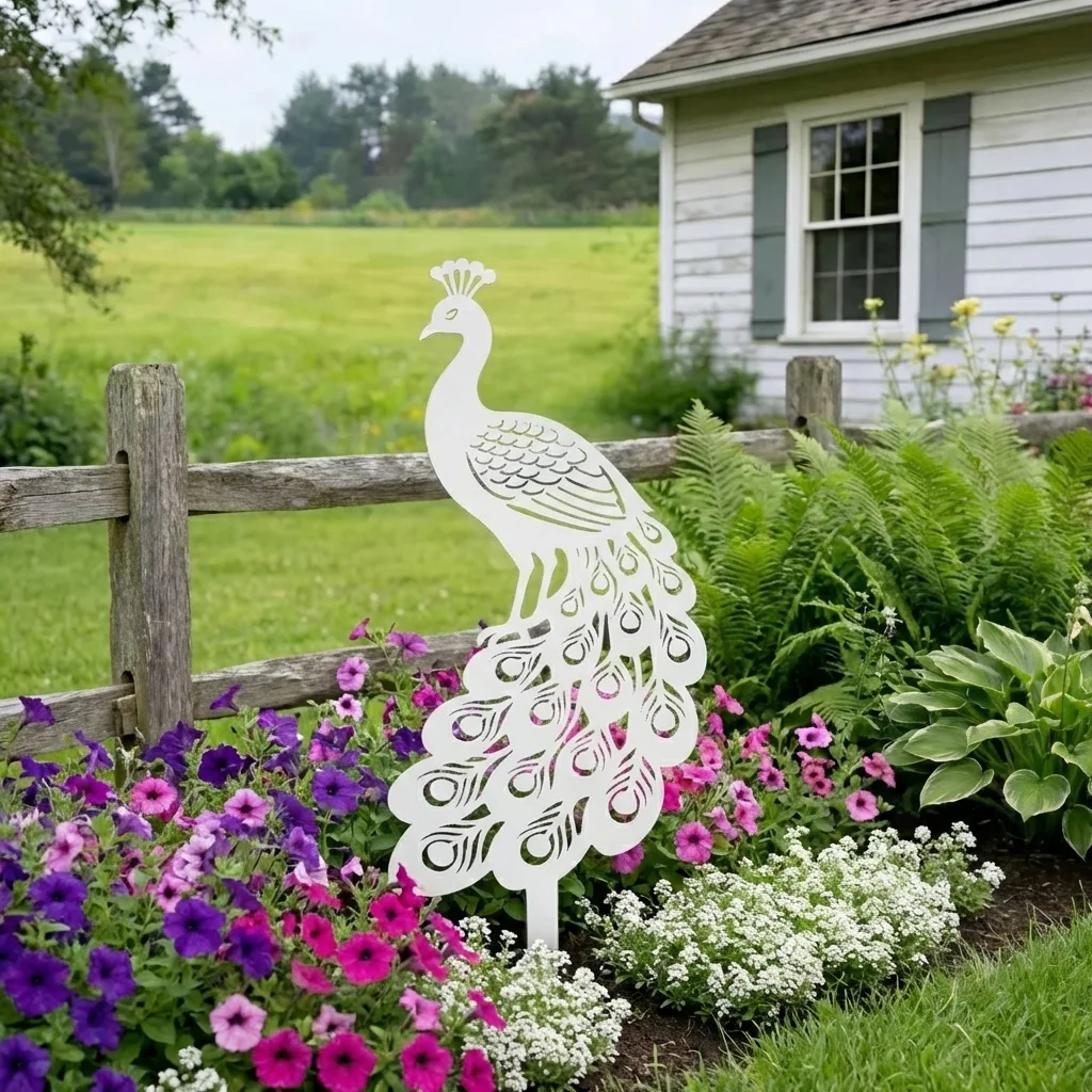 Dekoracja ogrodowa paw do wbicia w ziemię – „Paw Królewski”