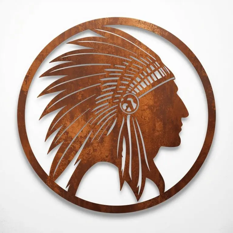 Dekoracja ścienna Indian Head Warrior to wyrazista, metalowa ozdoba z motywem profilu wojownika w pióropuszu – symbolem odwagi, siły i niezależności. Wzór jest precyzyjnie wycinany laserowo, dzięki czemu linie są ostre i czytelne, a całość prezentuje się bardzo nowocześnie we wnętrzach loftowych, industrialnych i minimalistycznych.