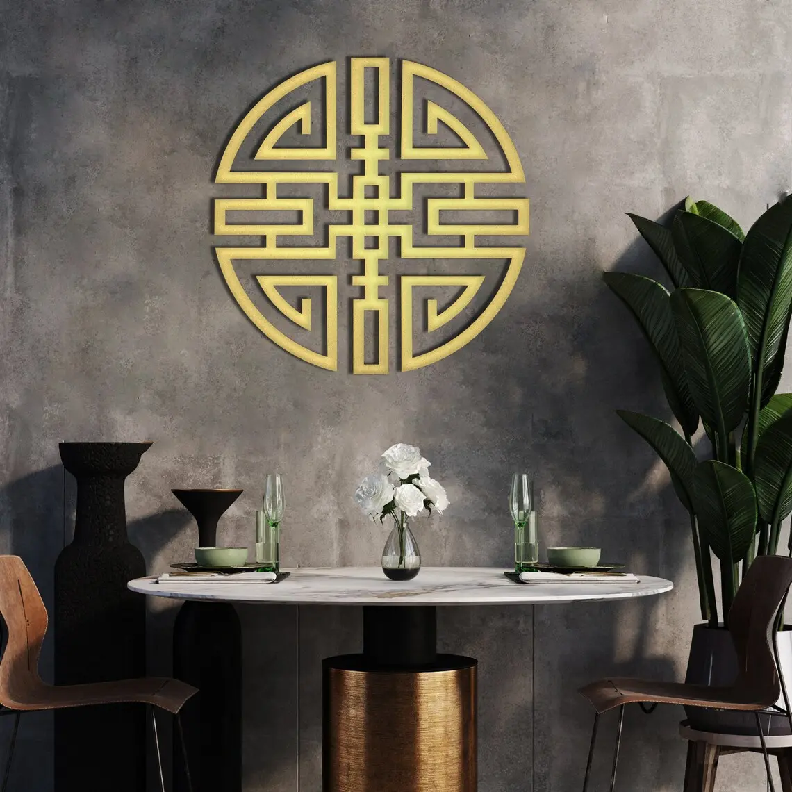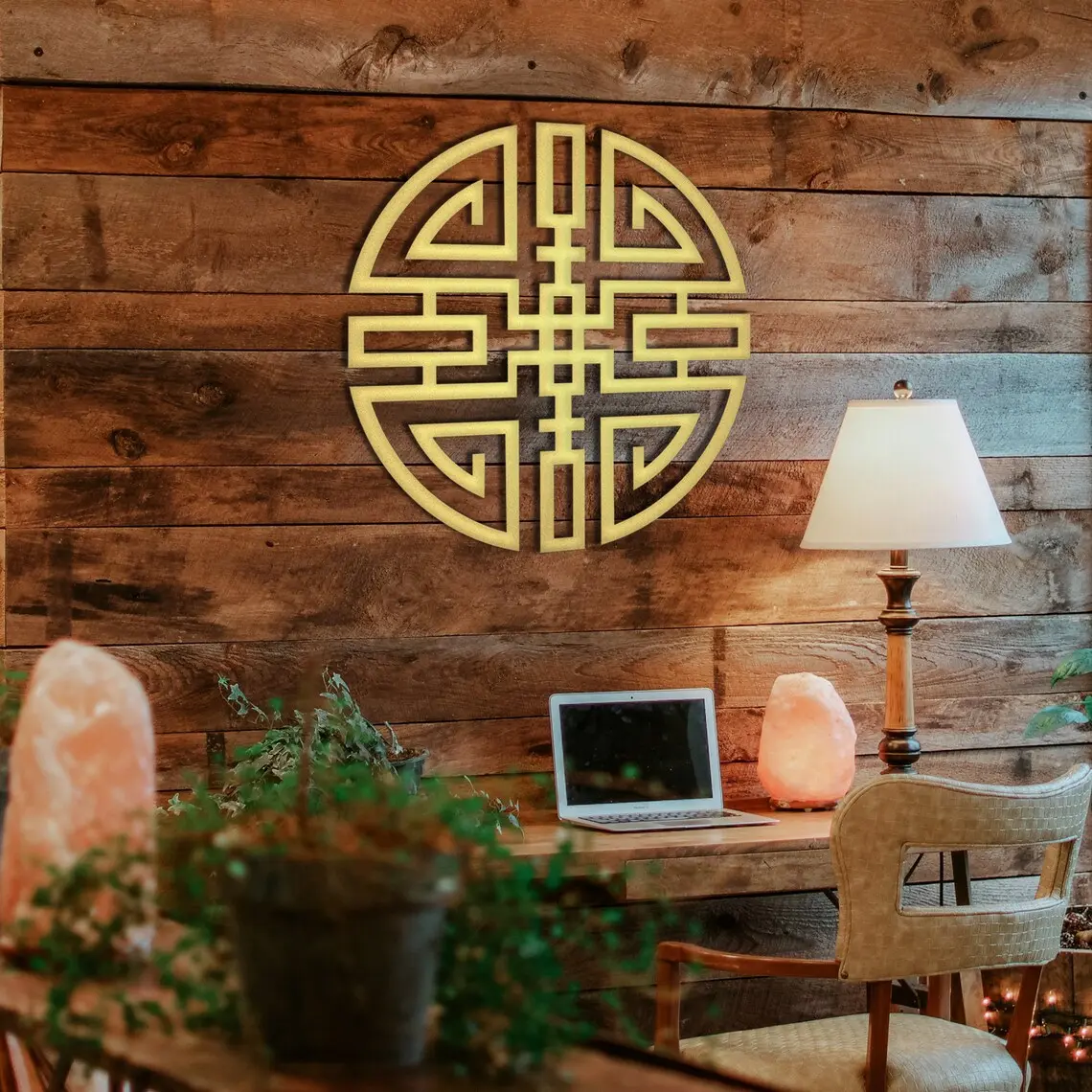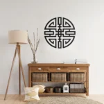 Metalowa dekoracja ścienna „Krąg Spokoju” inspirowana orientalnym wzorem. Geometryczna symetria nadaje wnętrzu harmonię i elegancję.