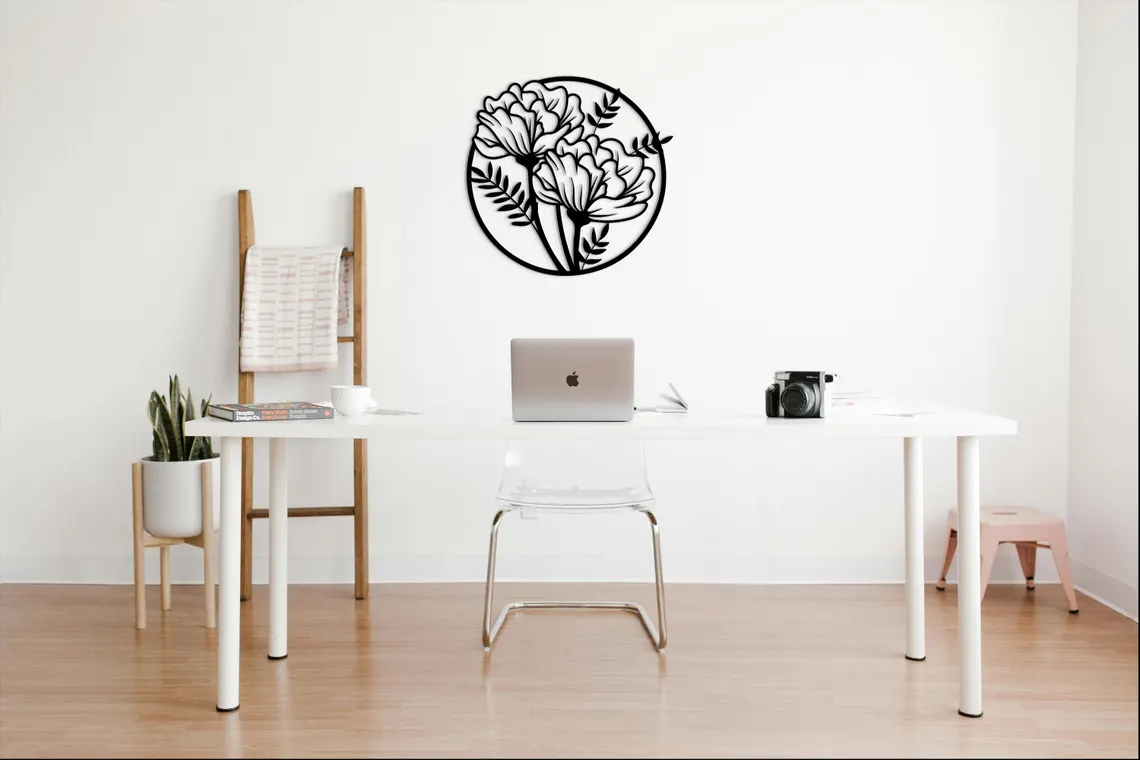 Dekoracja Ścienna Metalowa Okrągły Bukiet to wyjątkowy element wystroju, który łączy w sobie delikatność kwiatowego motywu z trwałością metalu. Umieszczone w okrągłej ramie kwiaty symbolizują harmonię i naturalne piękno, nadając wnętrzu przytulny i elegancki charakter. Ta dekoracja doskonale sprawdzi się w salonie, sypialni, biurze czy restauracji, tworząc przyciągający wzrok detal aranżacji. Wykonana z wysokiej jakości metalu, jest odporna na uszkodzenia i zachowa swój urok na lata.