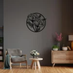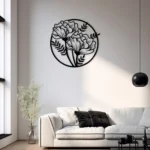 Elegancka metalowa dekoracja ścienna w formie okrągłej ramy z motywem kwiatowym. Idealna do wnętrz nowoczesnych i klasycznych.