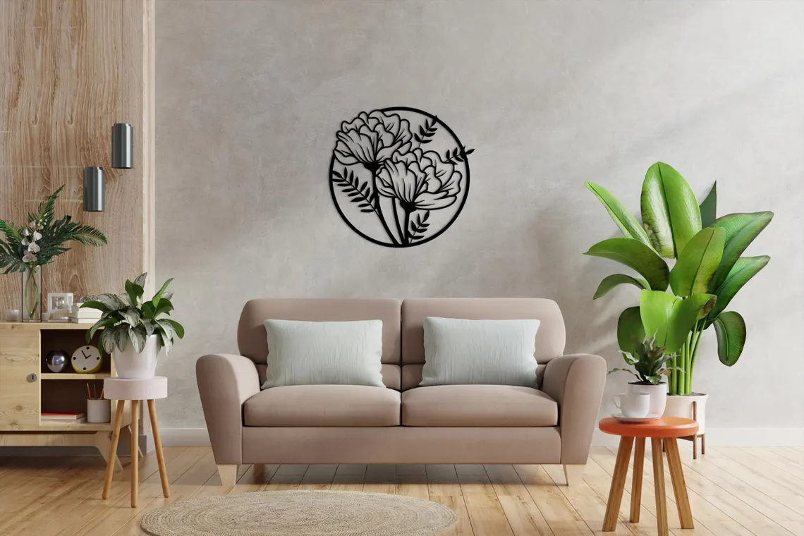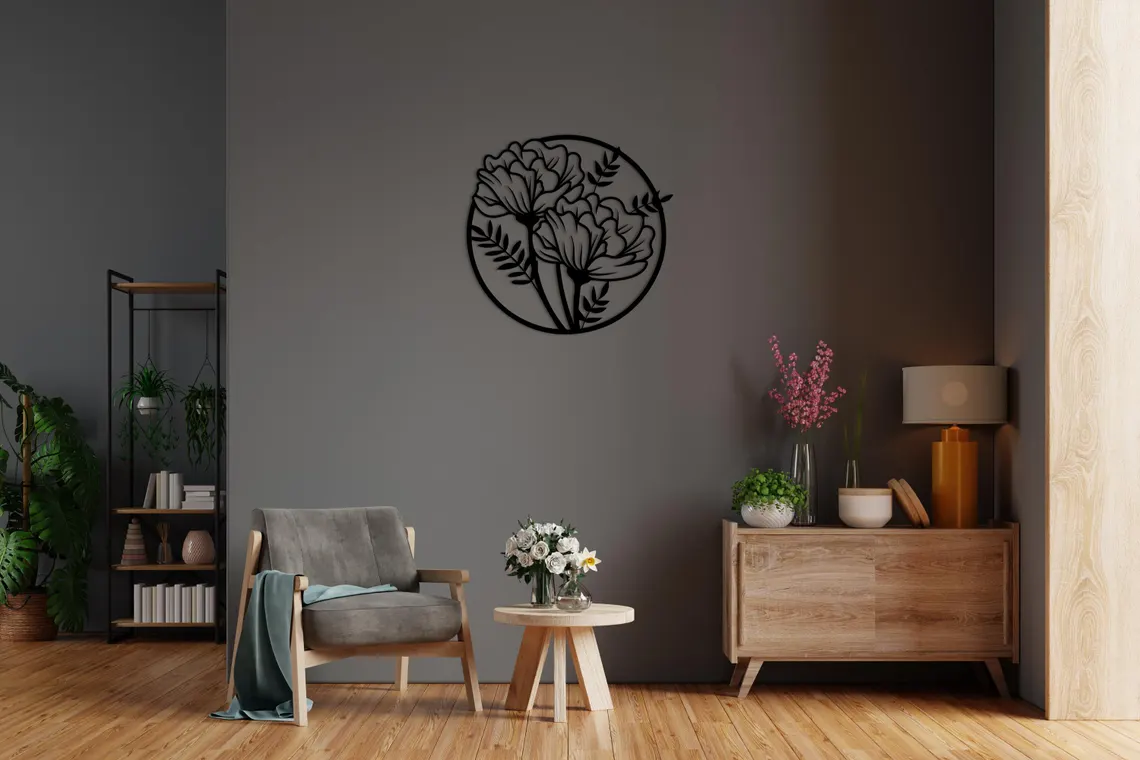 Dekoracja Ścienna Metalowa Okrągły Bukiet