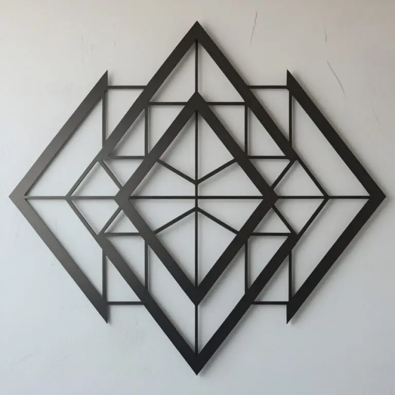 Diamond Geometry to nowoczesna dekoracja ścienna z metalu z geometrycznym układem rombów i „diamentowych” podziałów. Wzór jest czytelny, symetryczny i świetnie pasuje do wnętrz minimalistycznych, loftowych oraz nowoczesnych – szczególnie na gładkich ścianach, gdzie dobrze widać kontur i kształt.