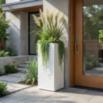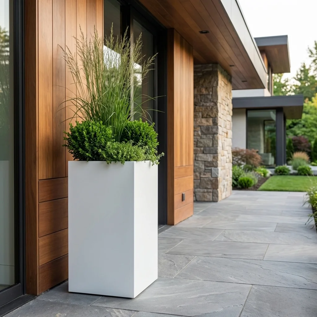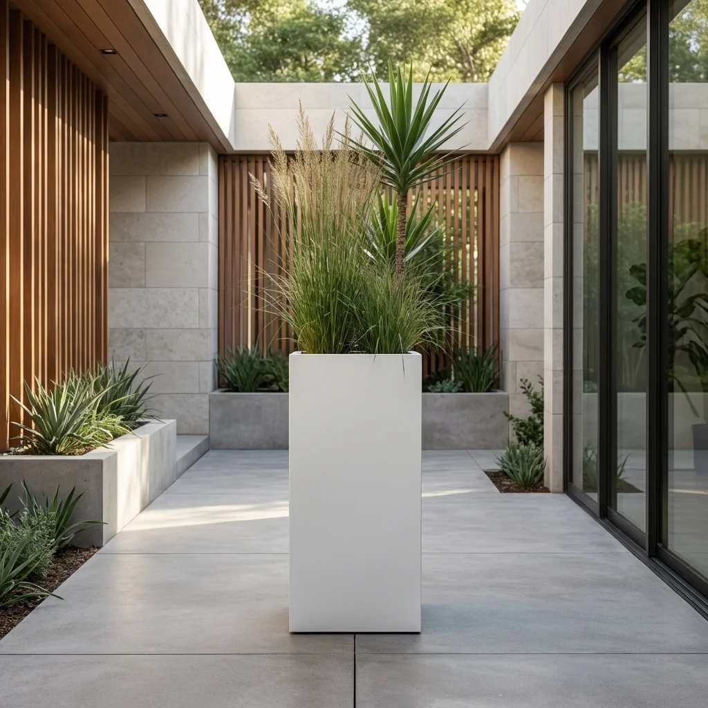 Biała metalowa donica slim do ogrodu – smukła forma i nowoczesna elegancja