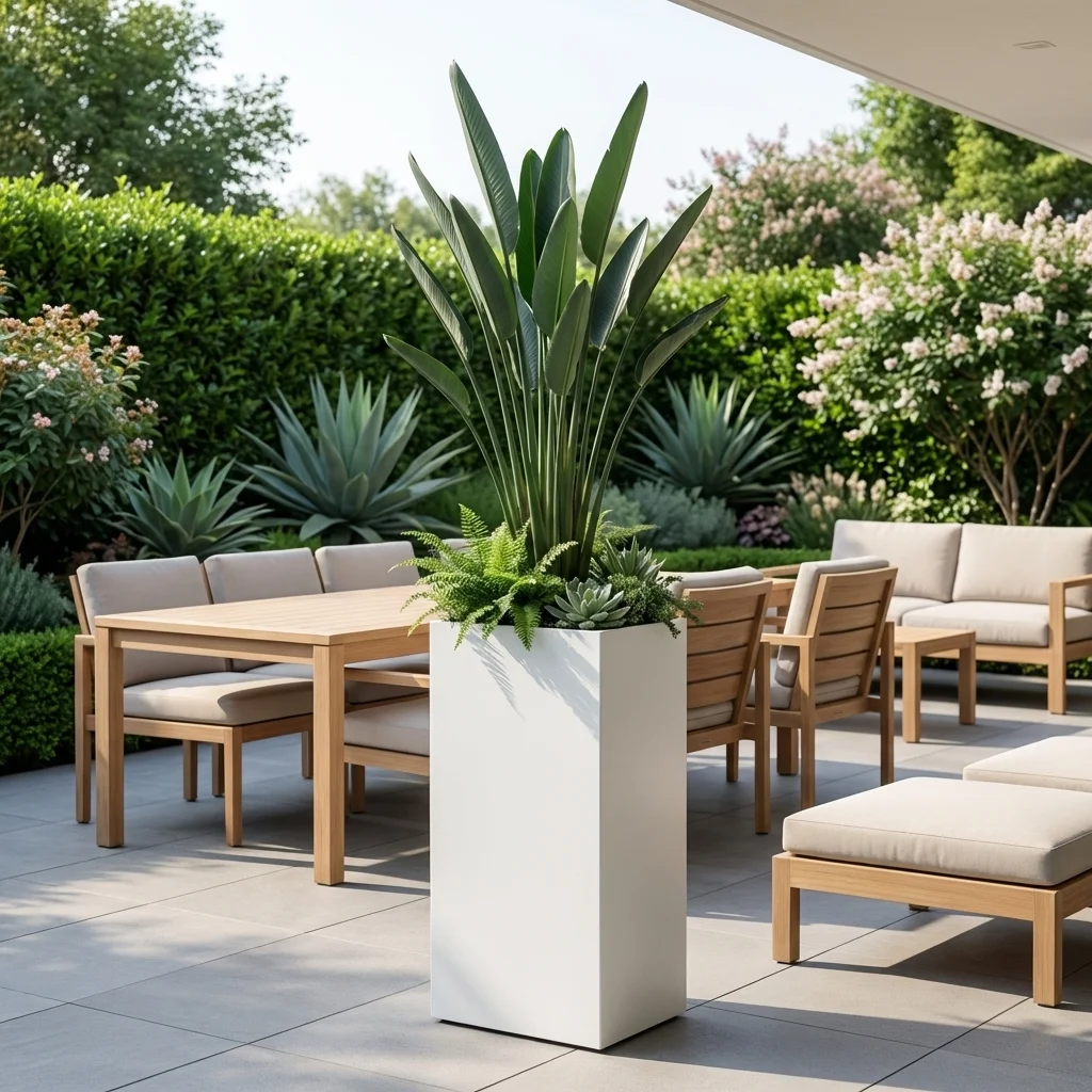 Biała metalowa donica slim do ogrodu to idealny wybór dla osób, które szukają nowoczesnej, smukłej i eleganckiej oprawy dla roślin. Jej wysoka, proporcjonalna forma doskonale sprawdza się na tarasach, balkonach, patio, przy wejściu do domu oraz w nowoczesnych aranżacjach ogrodowych, gdzie liczy się estetyka i wyrazisty efekt wizualny.