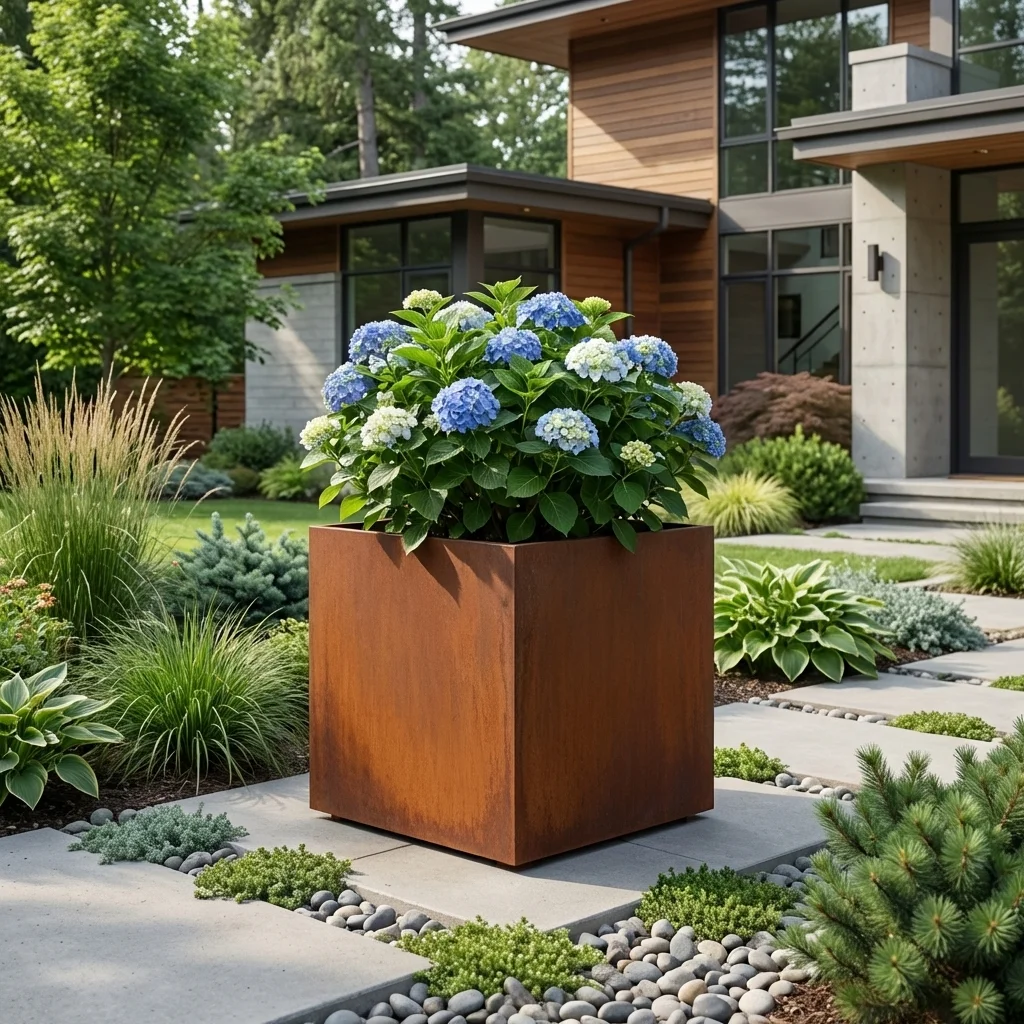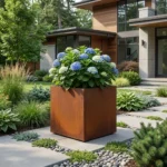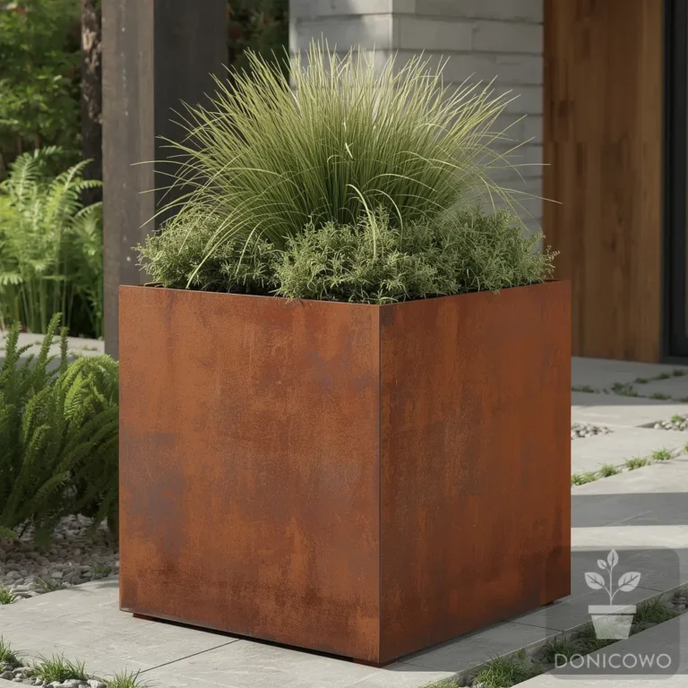 Cortenowa metalowa donica kwadratowa do ogrodu – nowoczesna forma i wyjątkowy charakter
