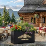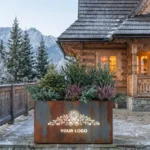Donica LED Góralska Serce z Ornamentem i Logo to ekskluzywna, metalowa donica z wyciętym wzorem oraz podświetleniem LED, która świetnie sprawdza się jako element reprezentacyjny przed wejściem do obiektu lub w strefie tarasu. Dzięki personalizacji możesz umieścić dowolne logo (lub znak graficzny) i zrobić z donicy mocny akcent marki – widoczny także po zmroku.