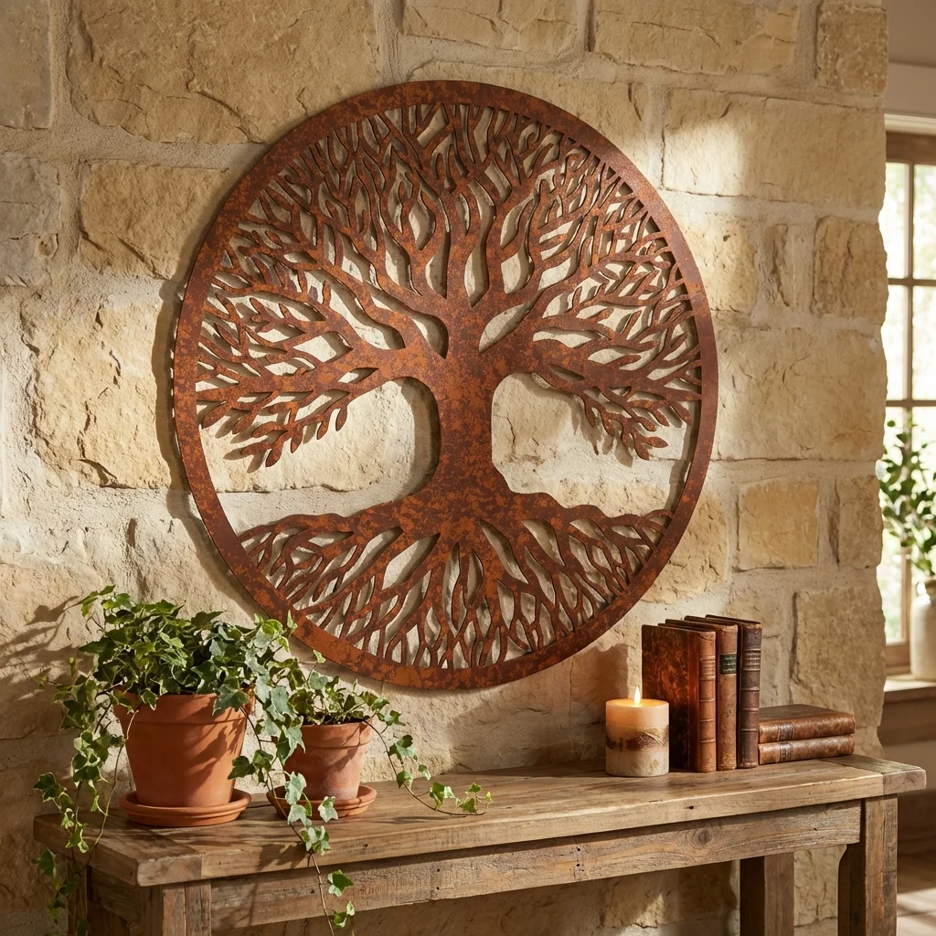 Drzewo Życia Klasyczne to metalowa dekoracja ścienna z ażurowym, ponadczasowym wzorem, który symbolizuje harmonię, siłę i równowagę. Klasyczna forma sprawia, że dekoracja pasuje zarówno do wnętrz nowoczesnych, jak i bardziej tradycyjnych.