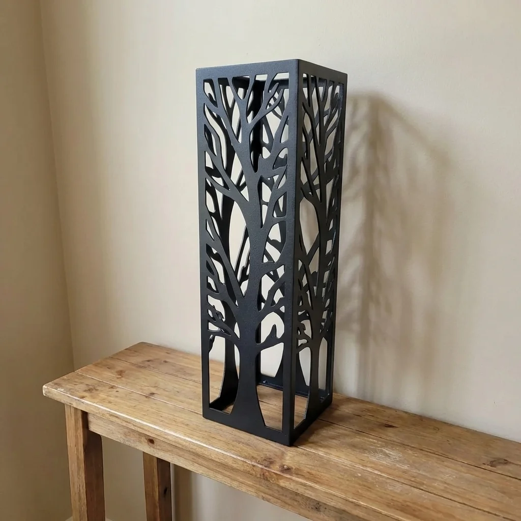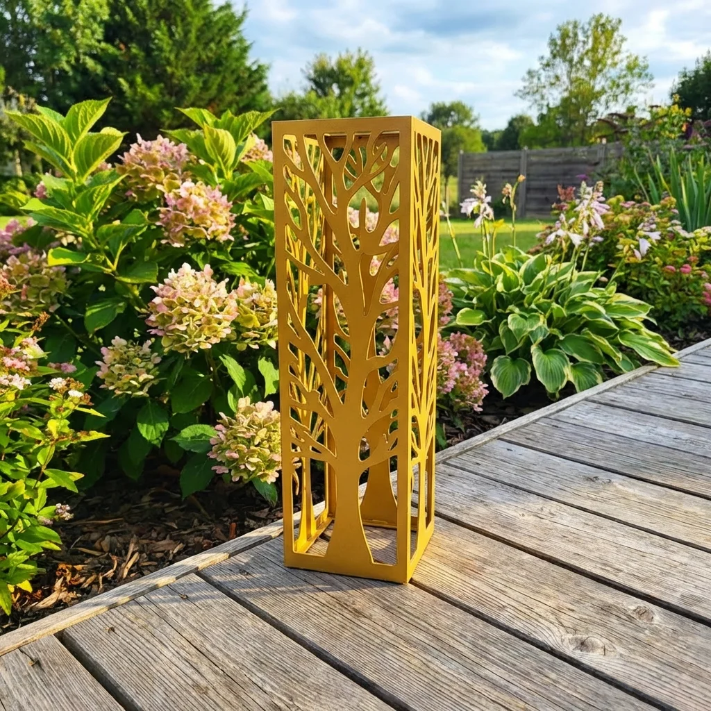 „Drzewo Życia” to metalowa kolumna ogrodowa z wyrazistym, ażurowym wzorem pnia i rozchodzących się gałęzi. Symboliczna forma natury połączona z precyzją nowoczesnej obróbki metalu tworzy rzeźbiarski punkt centralny dla ogrodu, tarasu i stref wejściowych.