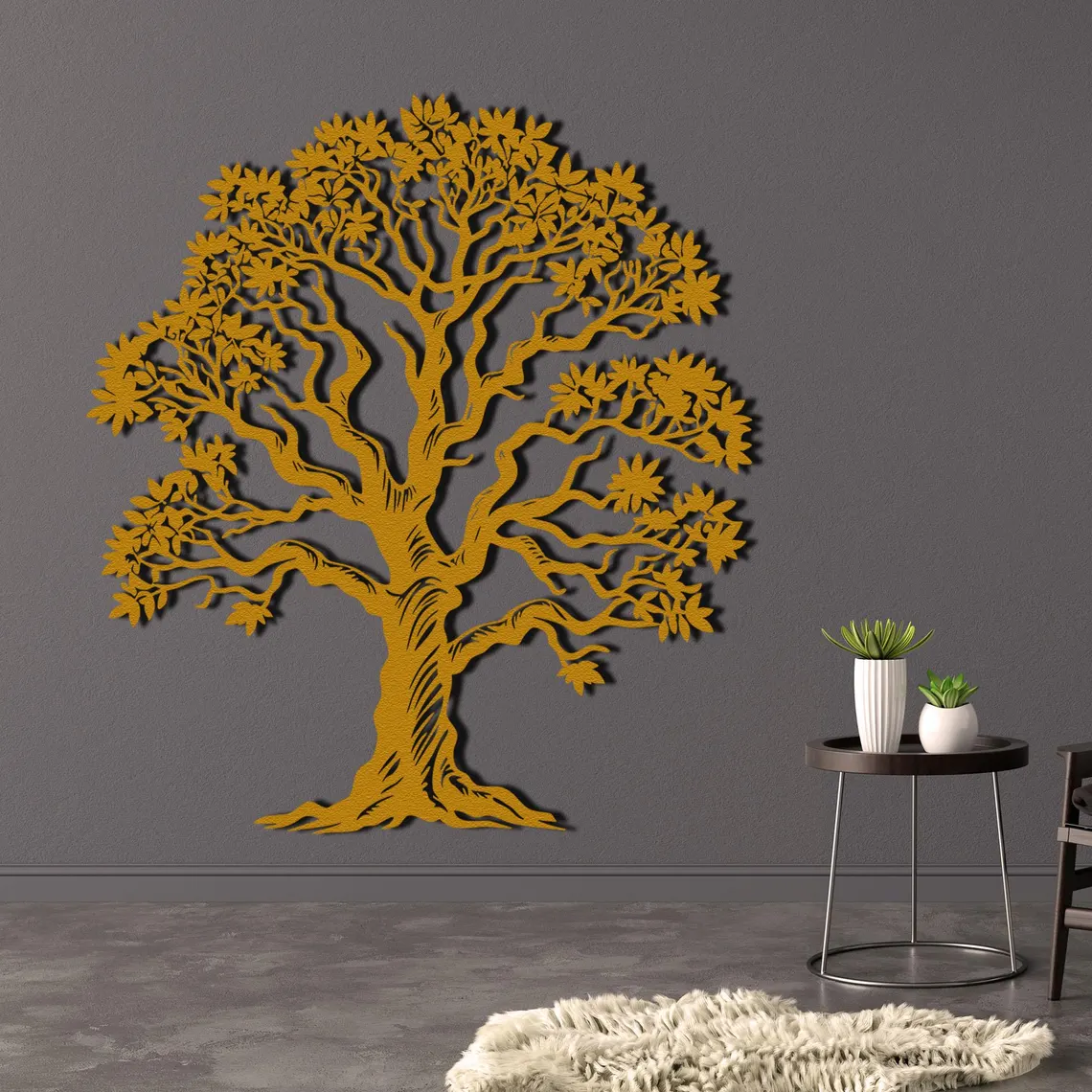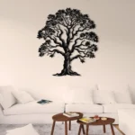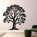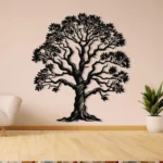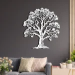Dekoracja ścienna z metalu przedstawiająca majestatyczne Drzewo Życia z bogatą koroną liści. Idealna do wnętrz inspirowanych naturą, dodaje harmonii i elegancji każdej przestrzeni.