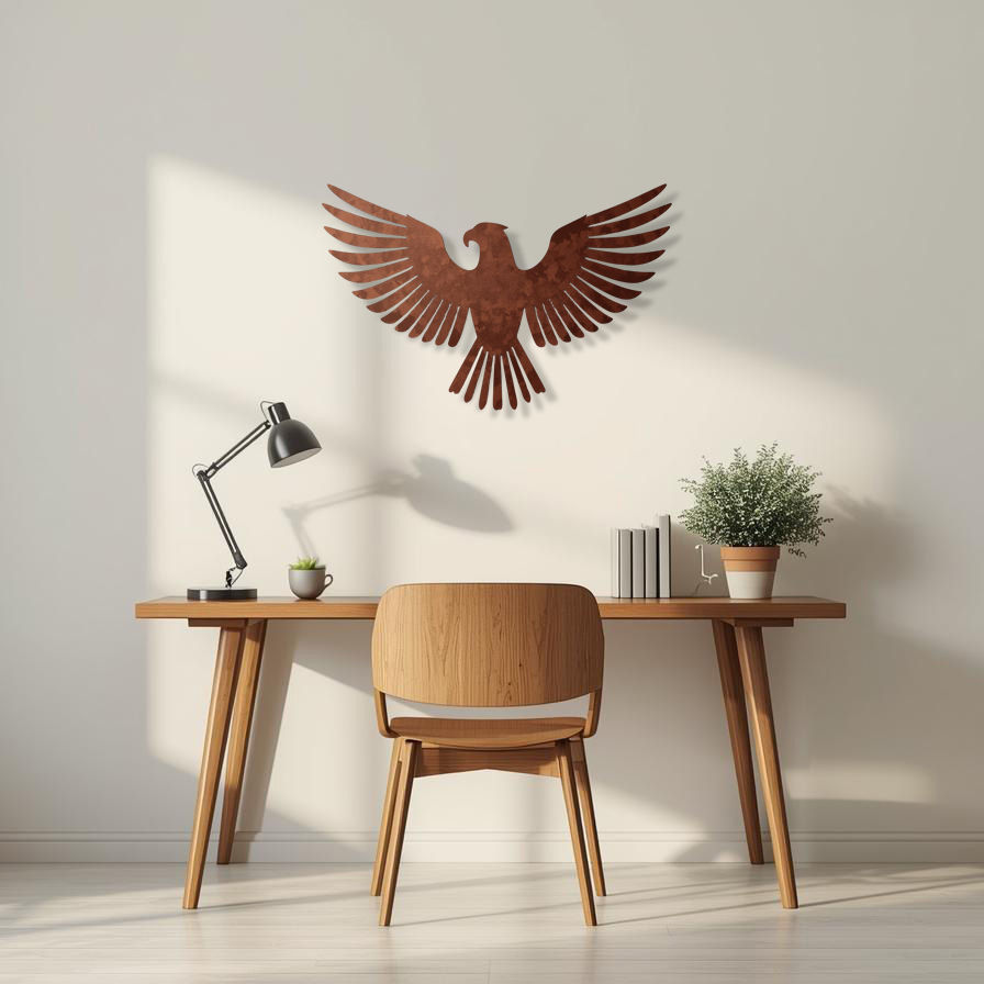 Eagle Spirit to dekoracja ścienna symbolizująca wolność i siłę. Wykonana ze stali corten lub malowanej proszkowo, idealna do wnętrz i przestrzeni zewnętrznych.