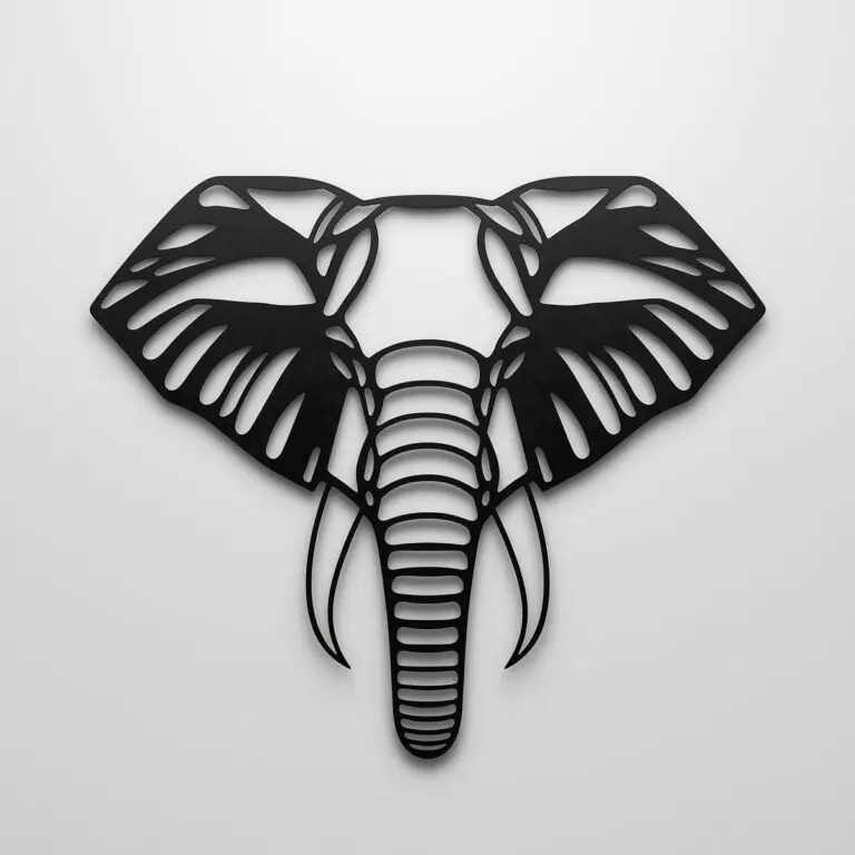 Elephant Head Geometry to metalowa dekoracja ścienna przedstawiająca głowę słonia w geometrycznym stylu. To mocny, nowoczesny akcent do salonu, biura lub wnętrz loftowych i industrialnych. Dekoracja jest precyzyjnie wycinana laserowo ze stali, dzięki czemu linie są wyraźne, a całość trwała.