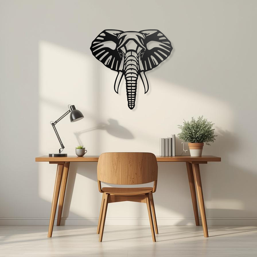 Metalowa dekoracja ścienna Słoń – wyjątkowy motyw symbolizujący mądrość, siłę i dostojność. Idealna ozdoba do salonu, biura lub przestrzeni w stylu nowoczesnym i industrialnym.