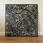 Panel dekoracyjny Geometric Orbit – ażurowy panel metalowy z geometrycznym wzorem okręgów i linii. Stal 2 mm. Kolory: Corten, malowany proszkowo (biały/czarny/złoty) lub stal nierdzewna. Rozmiary: 50×50, 80×80, 120×120 cm. Corten Style: wysyłka ok. 2 tygodni.