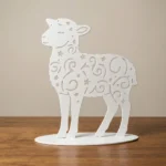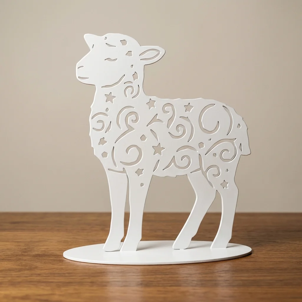 Ażurowa, wolnostojąca sylwetka baranka z motywem gwiazd i spiral. Idealna na taras, stół ogrodowy lub przy wejściu do domu jako elegancki akcent sezonowy i całoroczny. Dostępne rozmiary: 9×10 cm, 14×15 cm, 18×20 cm. Warianty wykończenia: corten, czarny, biały, złoty lub stal nierdzewna szczotkowana. Darmowa dostawa na terenie Polski.