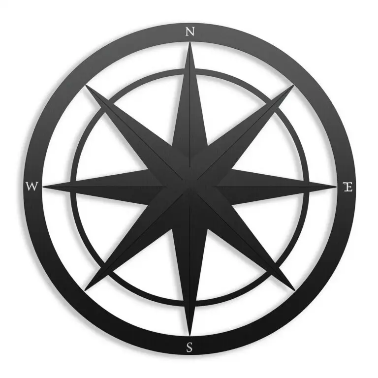 Kompas – róża wiatrów to metalowa dekoracja ścienna z klasyczną, ośmiokierunkową różą wiatrów w okręgu. To symbol wolności, podróży i szukania własnej drogi – idealny jako mocny akcent do wnętrz nowoczesnych, industrialnych oraz aranżacji w stylu marynistycznym.