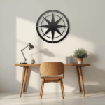 Metalowa dekoracja ścienna Kompas – Róża Wiatrów to elegancki i symboliczny element wystroju, który sprawdzi się w każdym wnętrzu. Wykonana z wysokiej jakości stali, przedstawia klasyczną ośmiokierunkową różę wiatrów otoczoną okręgiem.