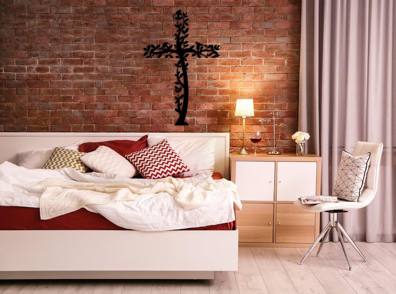 Krzyż doskonale sprawdzi się jako dekoracja do salonu, sypialni, korytarza, a także do kaplicy, domu modlitwy czy przestrzeni sakralnych.