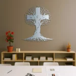Krzyż metalowy na ścianę – Drzewo Życia został zaprojektowany jako nowoczesna dekoracja ścienna o symbolicznym charakterze. Motyw drzewa, którego korona i korzenie przenikają się z formą krzyża, nadaje całości wyjątkową głębię i sprawia, że dekoracja doskonale wpisuje się zarówno w klasyczne, jak i nowoczesne wnętrza.
