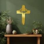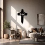 - Krzyż metalowy na ścianę wykonany z trwałej stali.