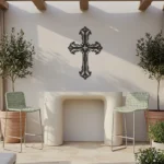 Krzyż metalowy na ścianę w klasycznej, ornamentalnej formie to elegancka dekoracja ścienna inspirowana tradycyjnymi wzorami. Symetryczna kompozycja i ażurowe detale nadają całości lekkości, jednocześnie podkreślając sakralny charakter dekoracji.
