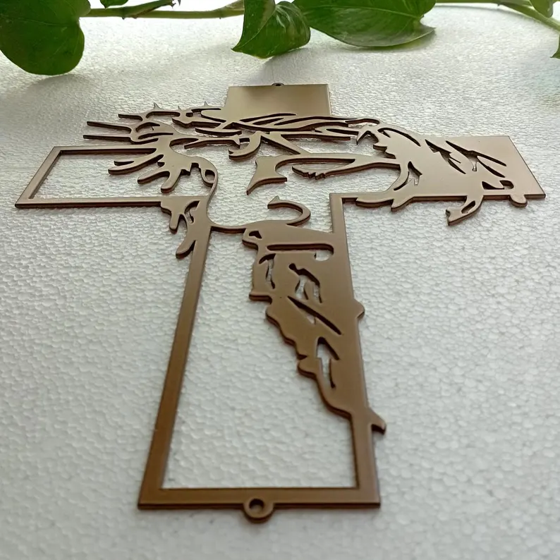 Krzyż wykonany jest z wysokiej jakości stali i wycinany laserowo,