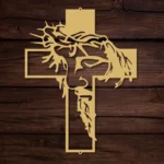 Krzyż metalowy na ścianę z twarzą Jezusa