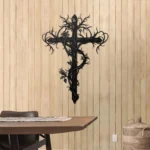 - Krzyż metalowy na ścianę – trwała dekoracja wykonana z metalu.
