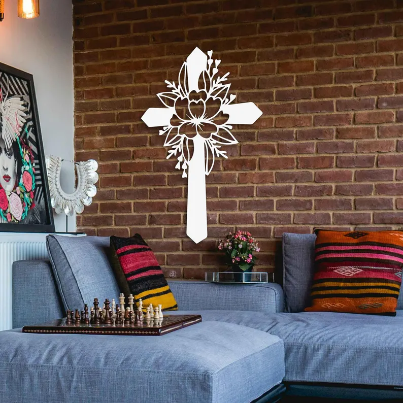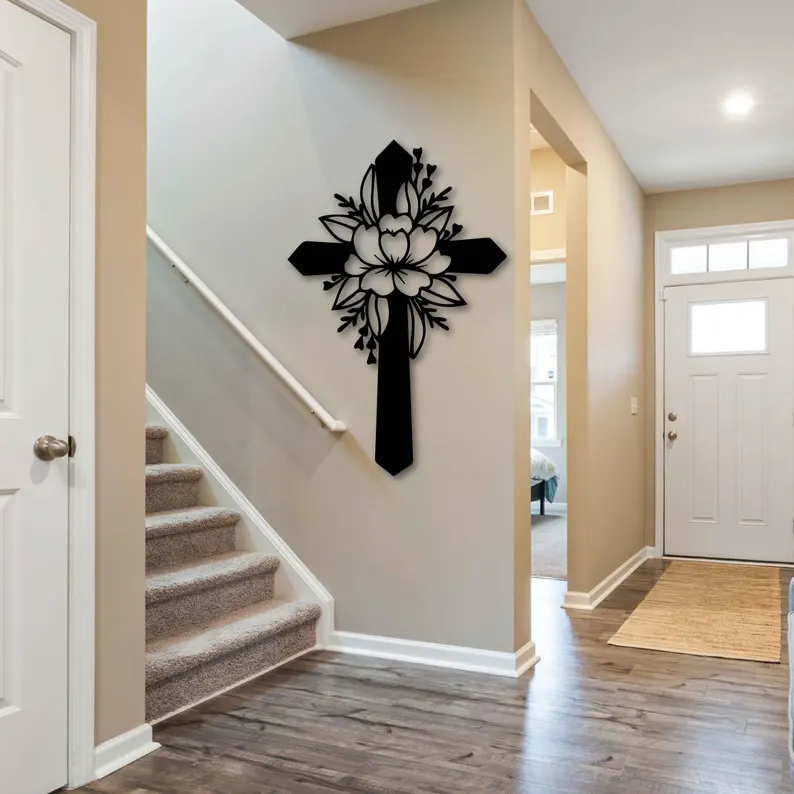 Ten krzyż metalowy na ścianę doskonale sprawdzi się we wnętrzach, w których ważna jest zarówno duchowość, jak i estetyka. Subtelny wzór kwiatowy sprawia, że dekoracja pasuje do nowoczesnych, klasycznych oraz romantycznych aranżacji.