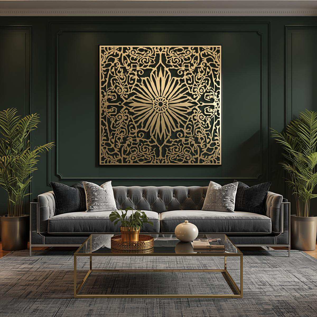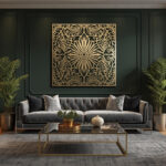 Panel dekoracyjny „Kwiat Orientu” to wyjątkowa ozdoba inspirowana sztuką orientalną i bogatymi, symetrycznymi ornamentami. Centralny motyw przypominający kwiat otoczony jest misterną, ażurową kompozycją, precyzyjnie wycinaną laserowo w metalu.