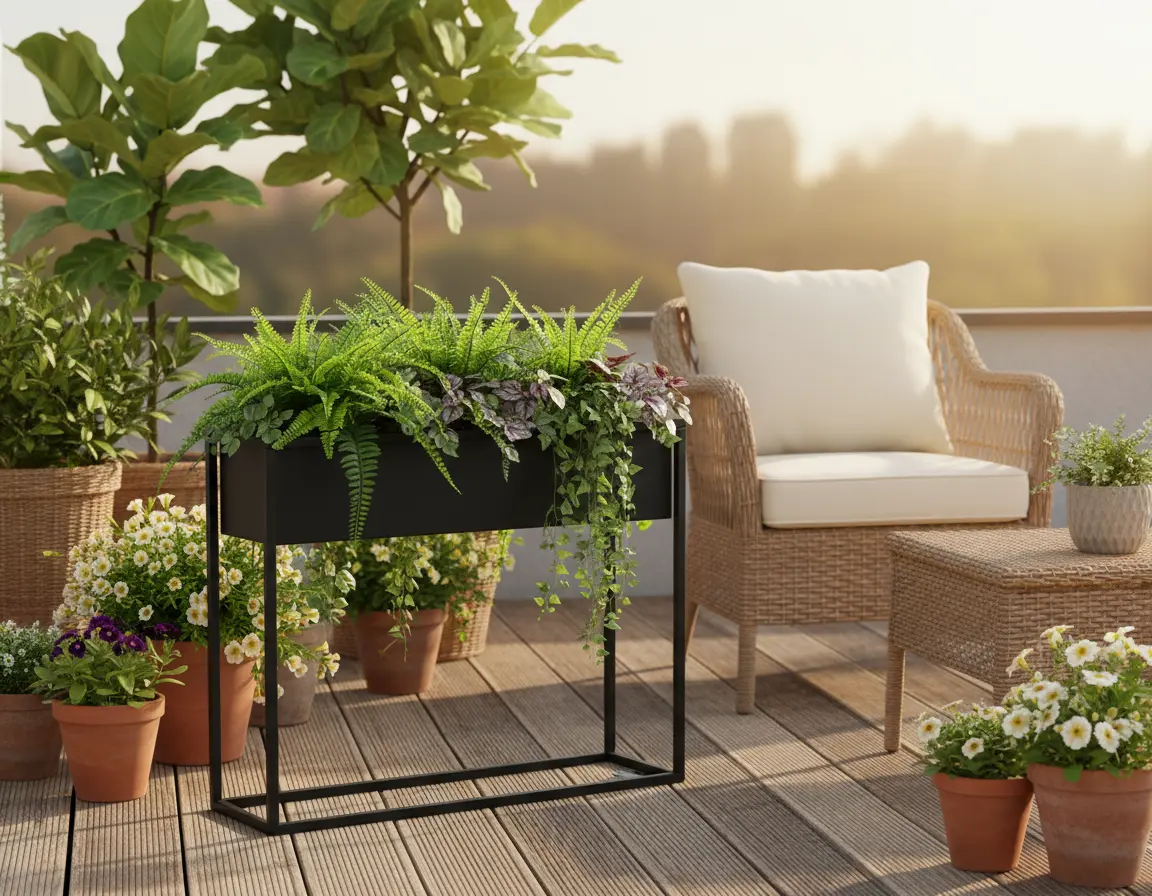 Elegancki Kwietnik Metalowy Czarny Slim – nowoczesny stojak na kwiaty, idealny do salonu, biura i na taras. Wykonany z metalu malowanego proszkowo na czarno.
