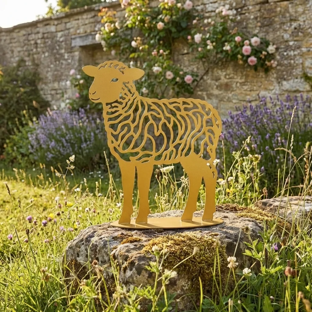 Labiryntowy Baranek – sylwetka ogrodowa to nowoczesna, ażurowa dekoracja z metalu z artystycznym wzorem linii przypominających labirynt. Minimalistyczna forma i precyzyjne wycięcia tworzą efekt „rzeźby w przestrzeni”, która przyciąga uwagę w ogrodzie, na tarasie lub przy wejściu do domu.
